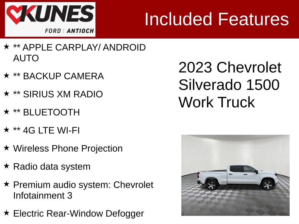 2023 Chevrolet Silverado 1500 WT EcoTec3 5.3L V8 10-Speed Automatic 4WD Clean CARFAX. Odometer is 1683 miles below market average!