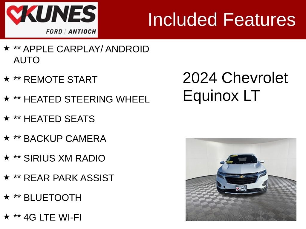 2024 Chevrolet Equinox LT 1.5L DOHC 6-Speed Automatic Electronic with Overdrive AWD Clean CARFAX. CARFAX One-Owner. 24/30 City/Highway MPG