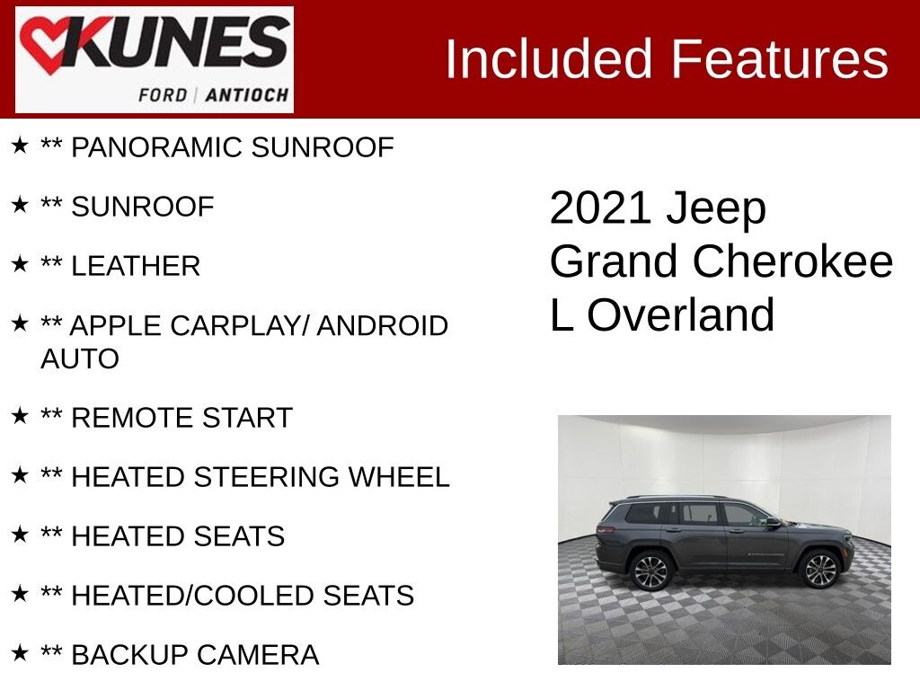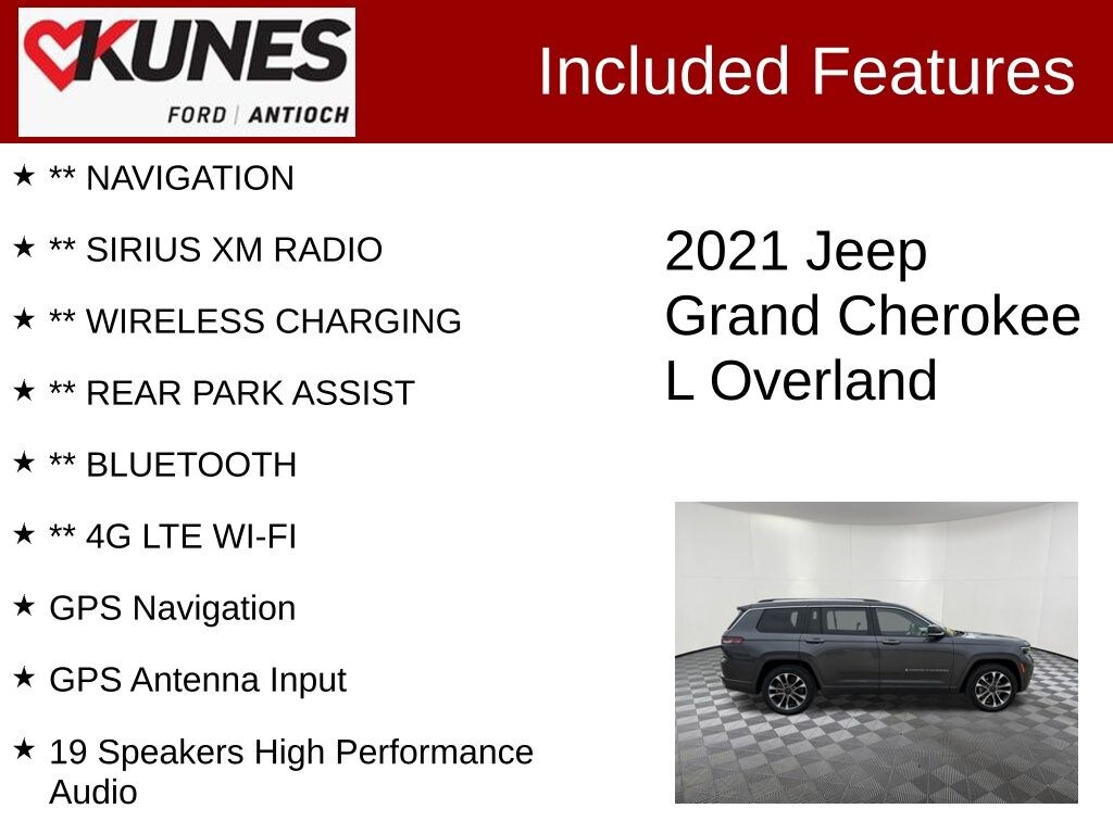 2021 Jeep Grand Cherokee L Overland 3.6L V6 24V VVT 8-Speed Automatic 4WD Clean CARFAX. CARFAX One-Owner.