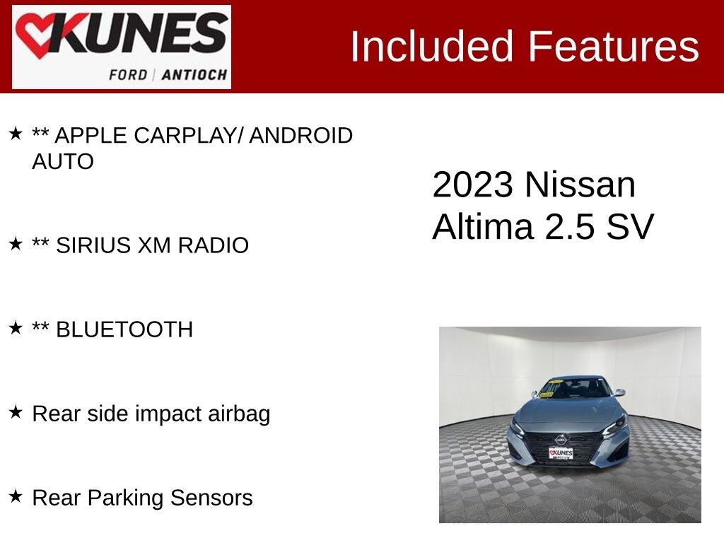 2023 Nissan Altima 2.5 SV 2.5L 4-Cylinder DOHC 16V CVT with Xtronic FWD CARFAX One-Owner. 27/39 City/Highway MPG