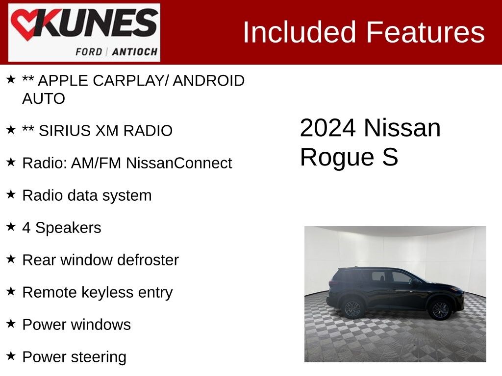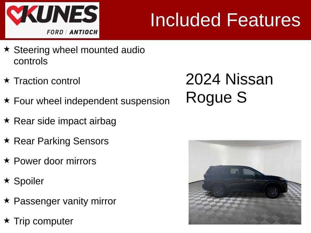 2024 Nissan Rogue S 1.5L DOHC CVT with Xtronic AWD Clean CARFAX. 28/35 City/Highway MPG
