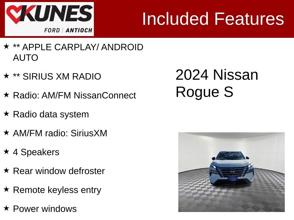 2024 Nissan Rogue S 1.5L DOHC CVT with Xtronic AWD CARFAX One-Owner. 28/35 City/Highway MPG