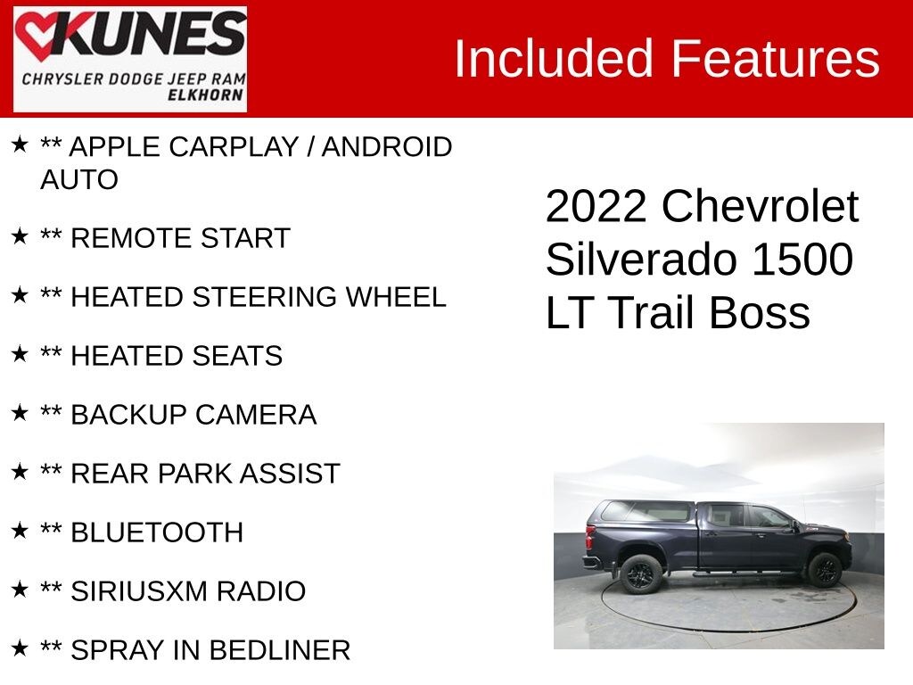2022 Chevrolet Silverado 1500 LT Trail Boss 3.0L I6 10-Speed Automatic 4WD Clean CARFAX.
