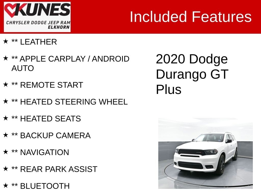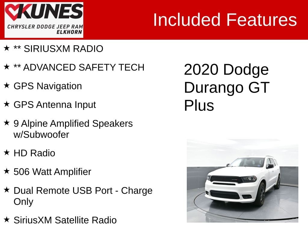2020 Dodge Durango GT Plus 3.6L V6 24V VVT 8-Speed Automatic AWD CARFAX One-Owner. Clean CARFAX.