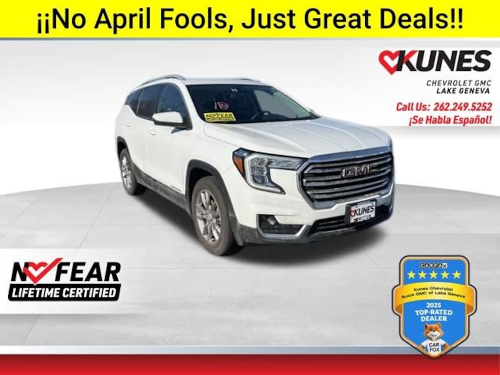 2024 GMC Terrain SLT Summit White AWD 1.5L DOHCRecent Arrival! CARFAX One Owner. Memory Package with two-position memory for driver's seat and outside mirrors License Plate Front Mounting Package Heated front seats and heated steering wheel Back-up camera Keyless entry and keyless start Leather seats with adjustable lumbar for driver and passenger Power driver seat with memory All-wheel drive with 1.5L turbocharged engine 9-speed automatic transmission Apple CarPlay, Android Auto, and Bluetooth connectivity Multi-zone climate control with air conditioning Hands-free liftgate and remote trunk release Remote engine start Fog lamps and LED headlamps with C-shaped lighting Privacy glass and aluminum wheels Rear bench seat with pass-through functionality Automatic headlights and heated mirrors with integrated turn signals Tire pressure monitoring system Lane departure warning, lane keeping assist, automatic highbeams Front collision mitigation, front and side airbags Stability and traction control