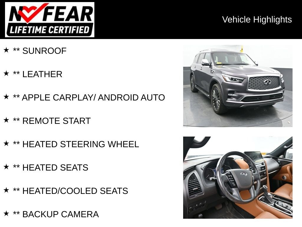 • Includes Cargo Package (cargo mat), luggage rack, and INFINITI Radiant Illuminated Kick Plates