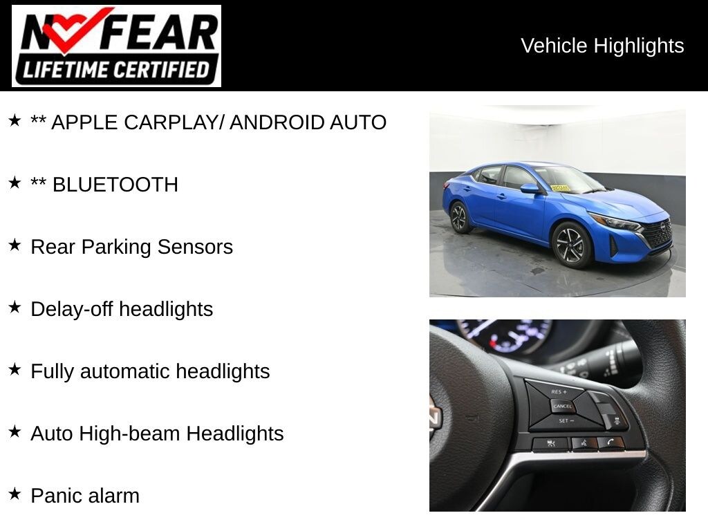2025 Nissan Sentra SV 2.0L I4 DOHC CVT with Xtronic FWD Clean CARFAX. CARFAX One-Owner. 30/40 City/Highway MPG