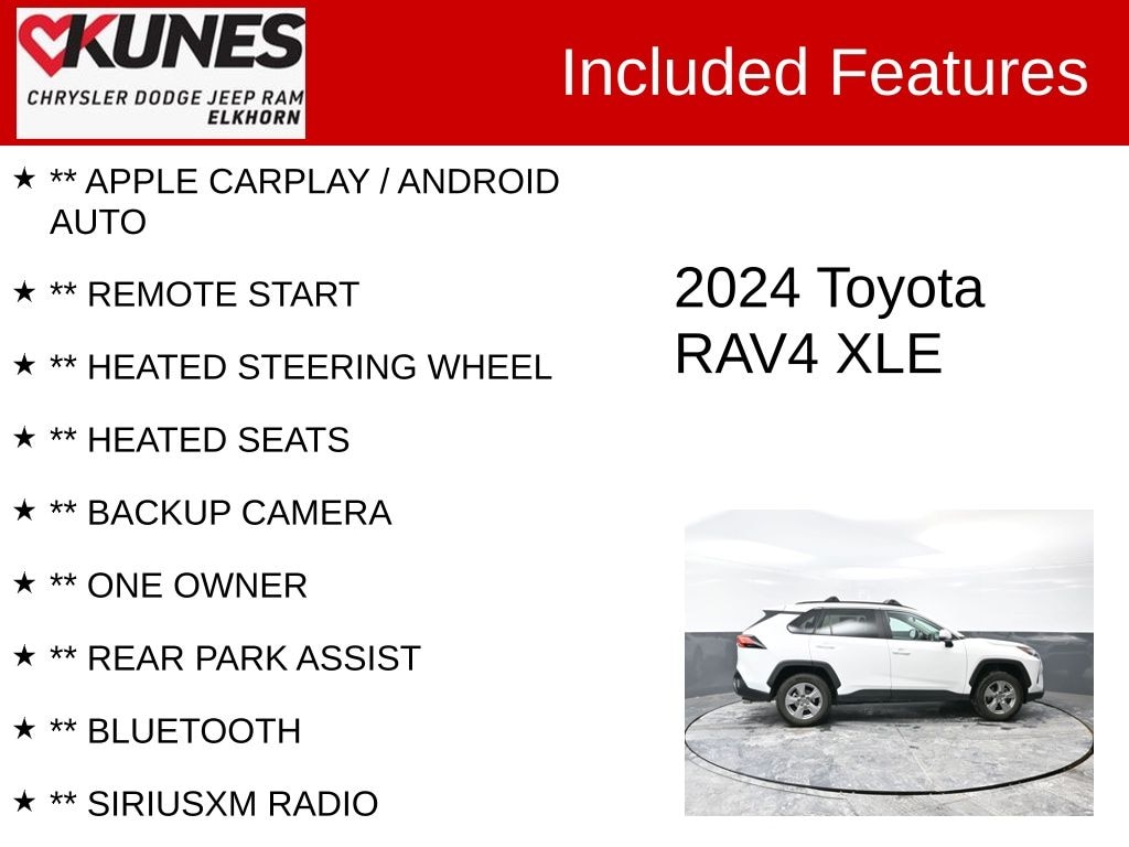 2024 Toyota RAV4 XLE 2.5L 4-Cylinder DOHC Dual VVT-i 8-Speed Automatic AWD CARFAX One-Owner. Clean CARFAX. 27/33 City/Highway MPG