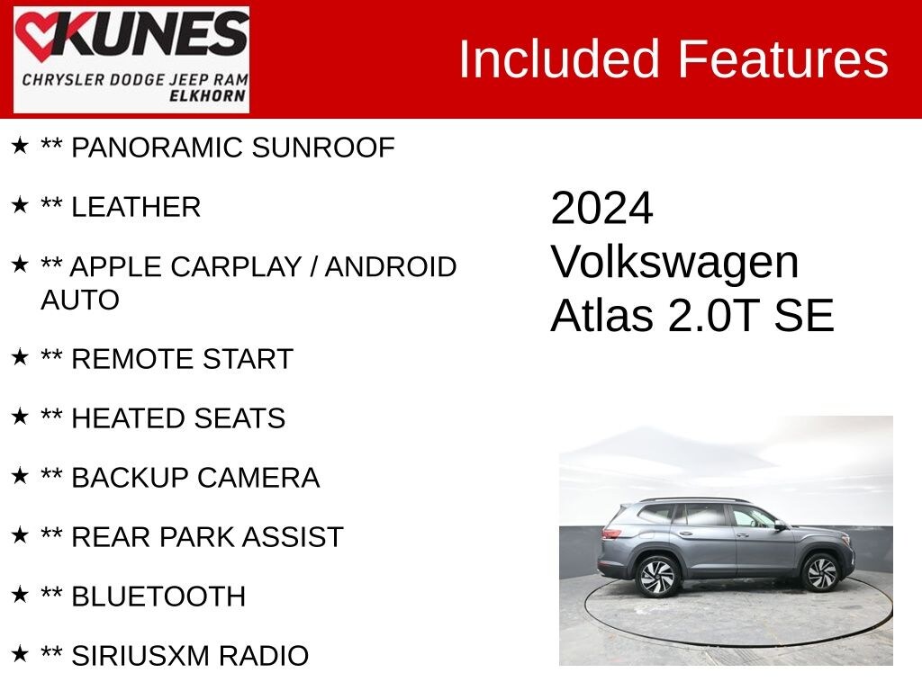 2024 Volkswagen Atlas 2.0T SE w/Technology 2.0L TSI 8-Speed Automatic with Tiptronic AWD CARFAX One-Owner. 19/26 City/Highway MPG