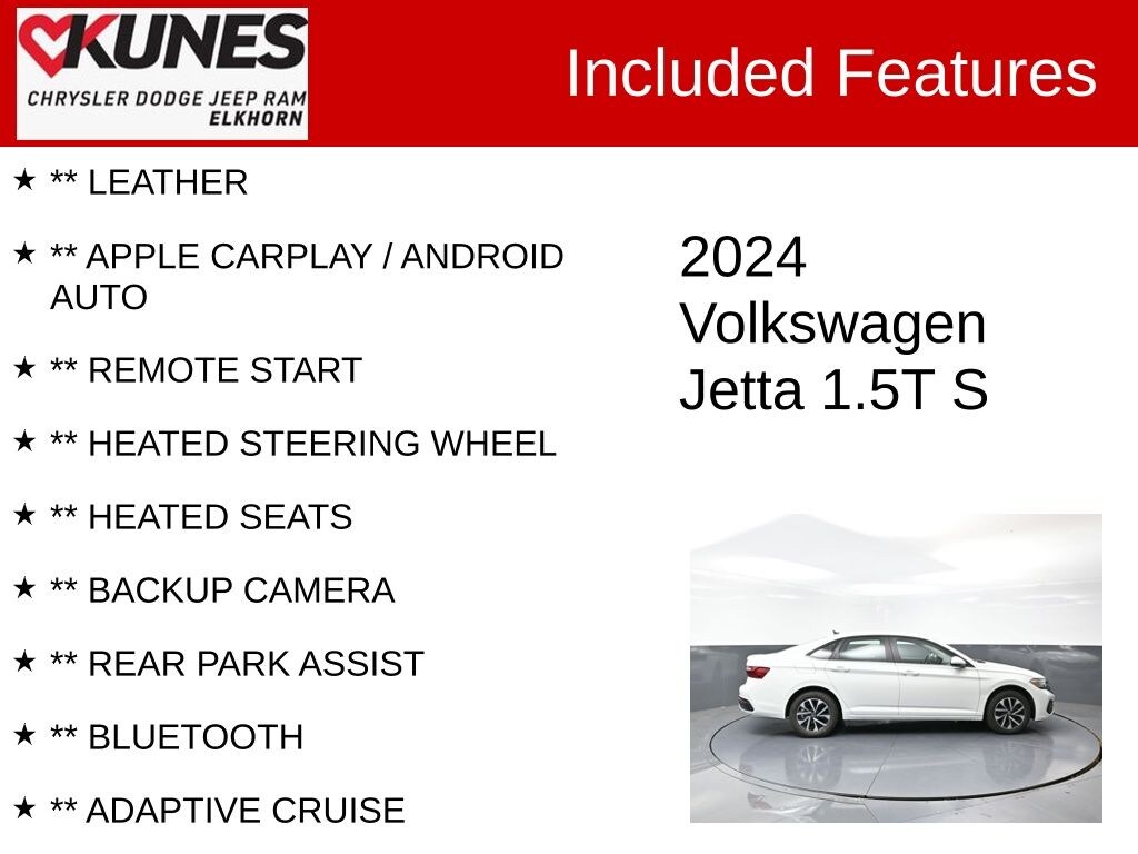 2024 Volkswagen Jetta 1.5T S 1.5L I-4 DI DOHC Turbocharged 8-Speed Automatic with Tiptronic FWD CARFAX One-Owner. Odometer is 4995 miles below market average! 30/41 City/Highway MPG